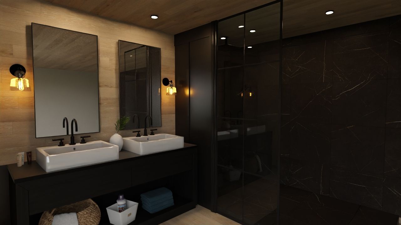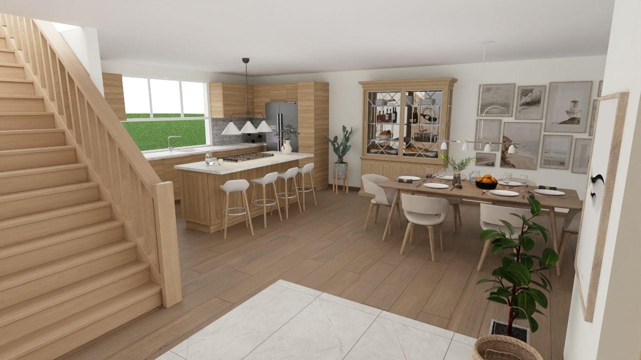 Découvrez nos créations en plans 3D : cuisines, salles de bain, sous-sols et espaces de vie conçus sur mesure.